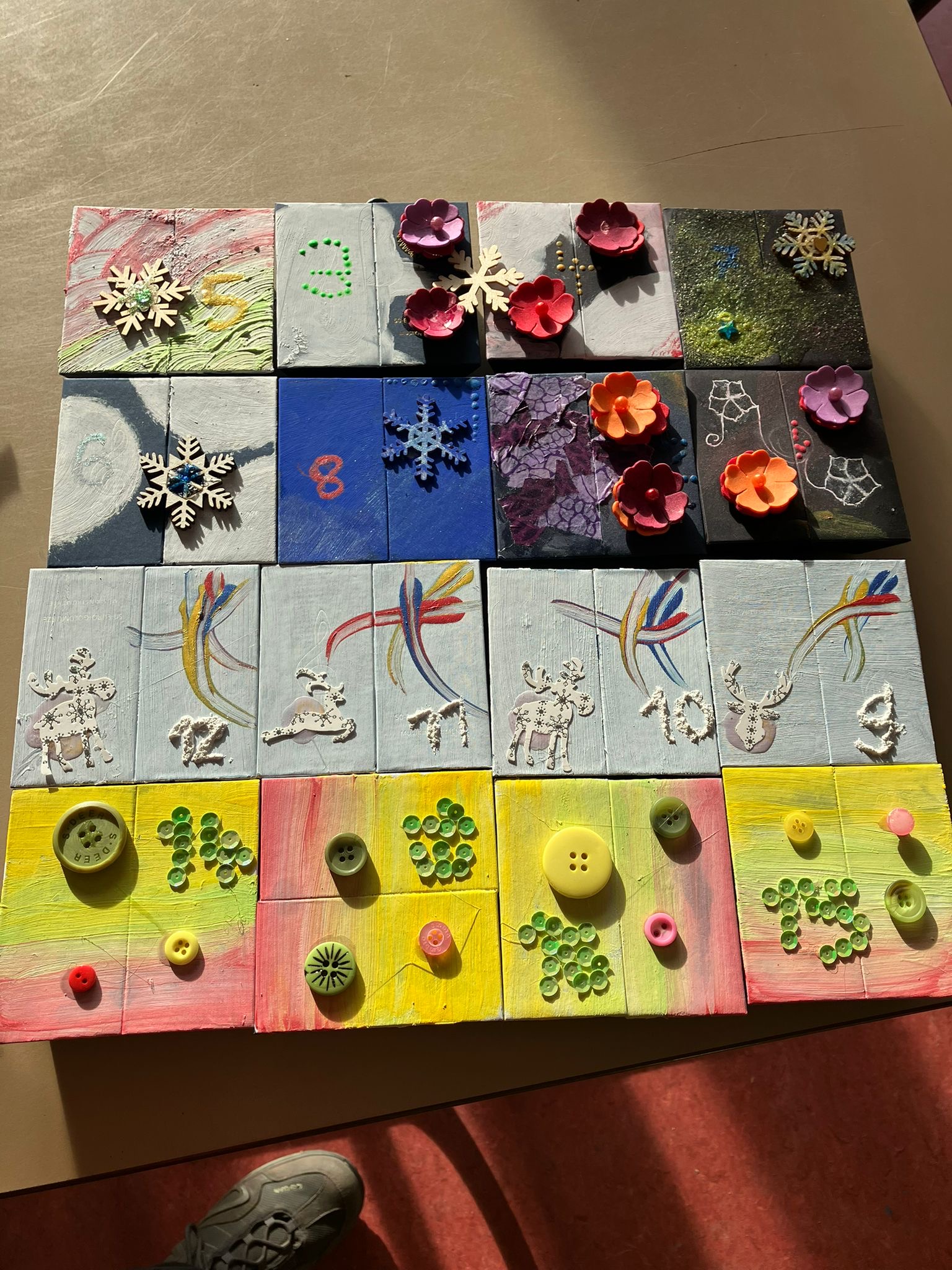 In der Kreativ-AG am Dienstagnachmittag bereiten sich die Schülerinnen und Schüler schon sehr fleißig auf die kommende Advents- und Weihnachtszeit vor. Zwei originelle Adventskalender als Upcyclingprojekte wurden mit ganz viel Ausdauer aus einer alten Jeans und aus kleinen Schachteln gestaltet.