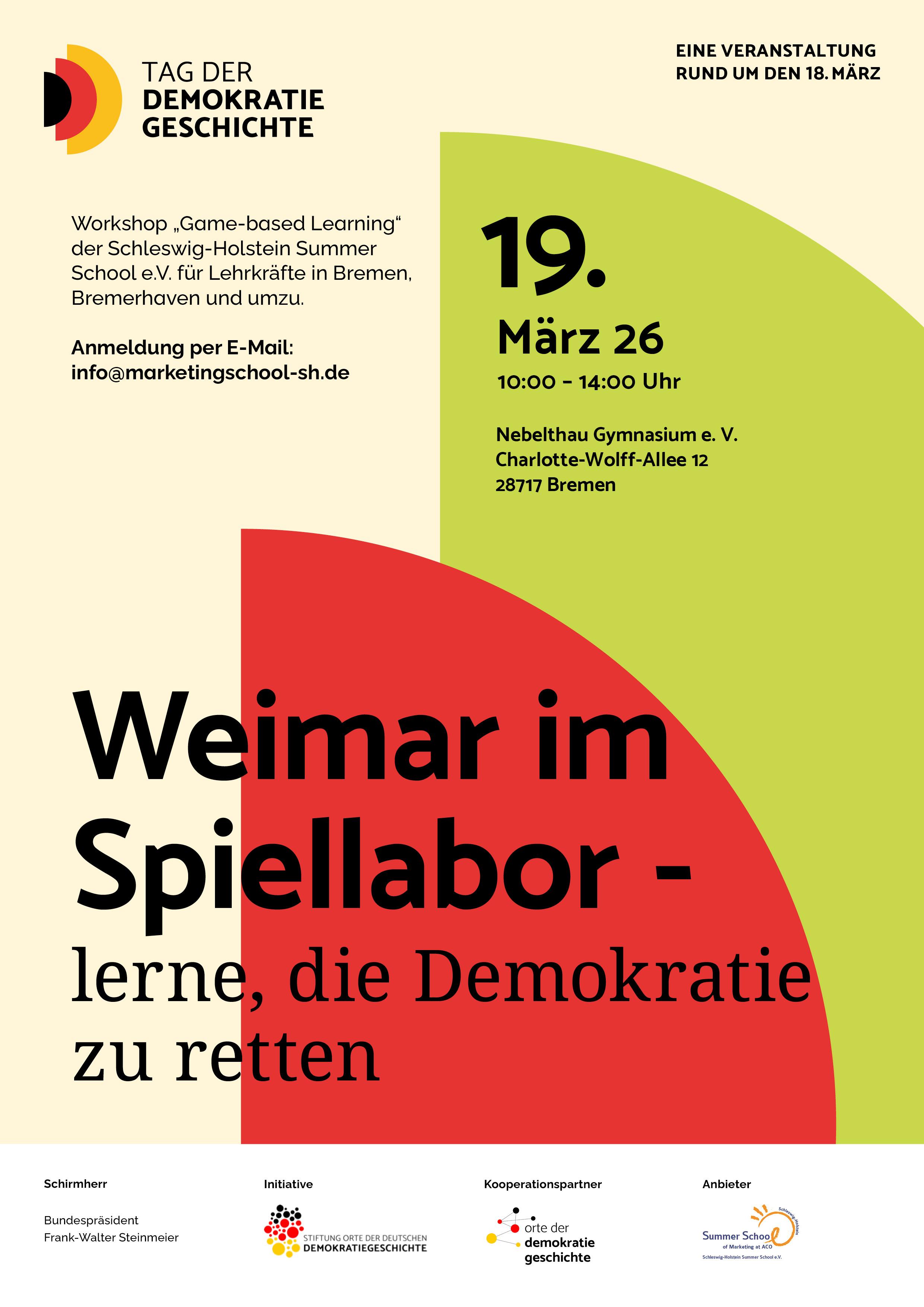 Wir in Bremen werden den bundesweiten Tag der Demokratiegeschichte nutzen, um uns den großen Herausforderungen der Gegenwart zu stellen. Wir nehmen die Einladung des Bundespräsidenten an, weil wir seine Erkenntnis teilen, Medienbildung ist auch Demokratiebildung. Deshalb setzen wir auf neue Formate und öffnen uns praktischen Erfahrungen. Dazu arbeiten wir u.a. mit Schleswig Holstein Summer School e.V. zusammen.